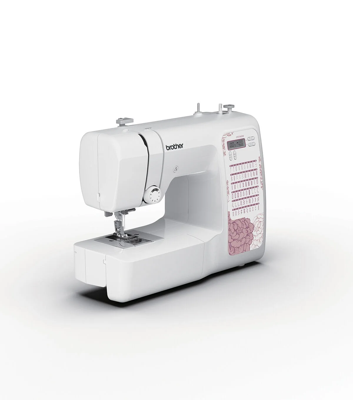 Enjoy a full range of features in a compact, durable and multi-blue floral footprint with the CP2160F computerized sewing machine. The CP2160F comes with 60 built-in stitches, seven auto-size one-step buttonholes, and selecting one of the attractive built-in stitches is as simple as pressing a button with the easy stitch selector. A sharp LCD Screen and advanced needle threading system, which makes threading easy, add to the machine's highlights. Utilize drop feed dogs and try free-motion sewing or the free arm capability to make sewing cuffs, sleeves, and skinny jeans a breeze. The CP2160M allows for virtually effortless sewing on denim, tweed, and other thick fabrics with the exceptional feed system and fixed needle bar. Also included are seven first-rate sewing feet (a Zigzag foot, a Buttonhole foot, a Zipper sewing foot, a Button sewing foot, Overcasting foot, Blind stitch foot, and a Monogramming foot) to help you achieve a variety of sewing techniques. Complete with a Quick-Set bobbin and a super bright LED-lit work area, the affordable CP2160M will have you creating DIY projects and garments in no time.